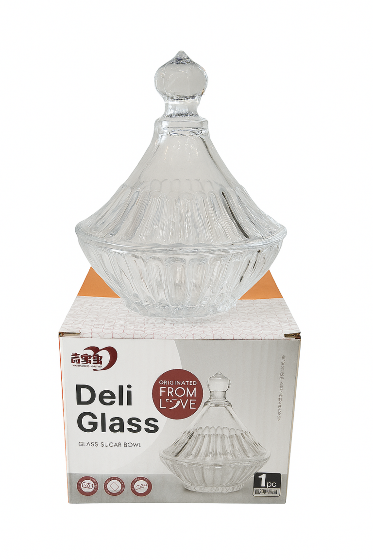 وعاء زجاجي فاخر لتقديم التمر – تصميم زخرفي أنيق بغطاء قبة