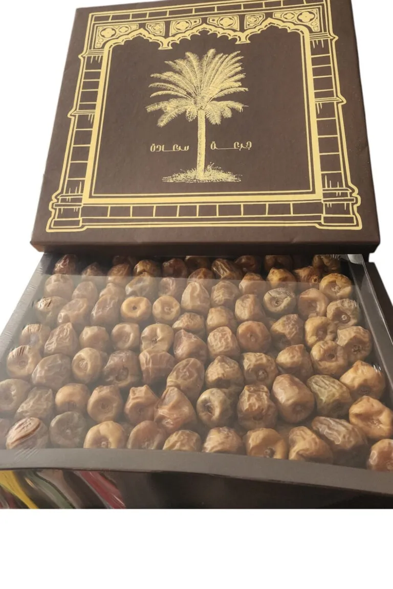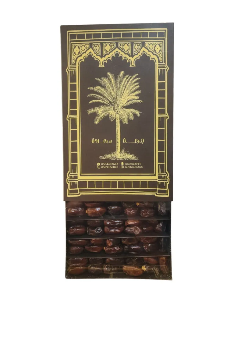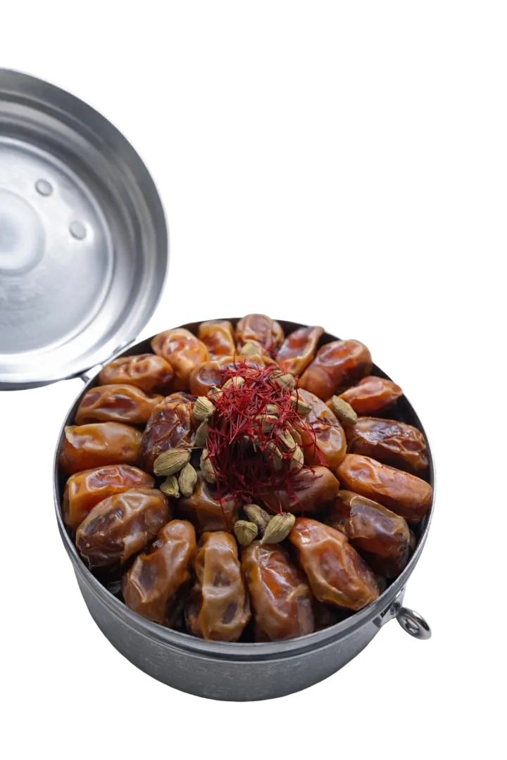 Dates with cardamom and saffron, small tin box, 1 kg – a luxurious box for a special gift
