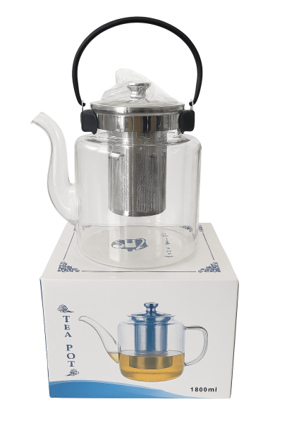 1800ml clear glass teapot with stainless steel filter and heat-resistant top handle