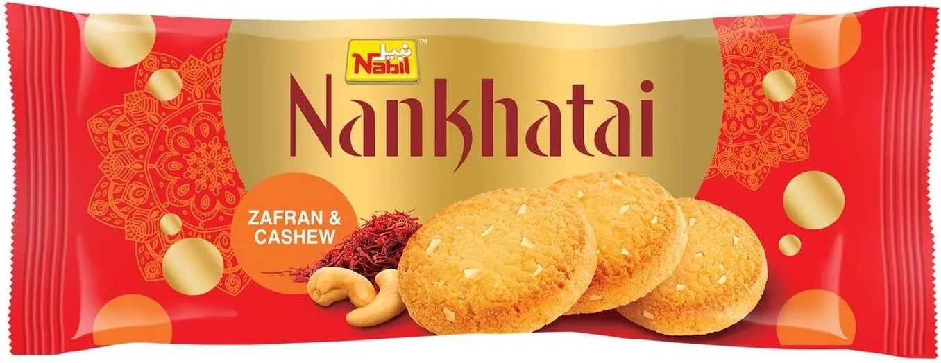 Enjoy a unique taste experience with Nabil Nankahtai Biscuits Rich in flavors Premium saffron and roasted cashews.