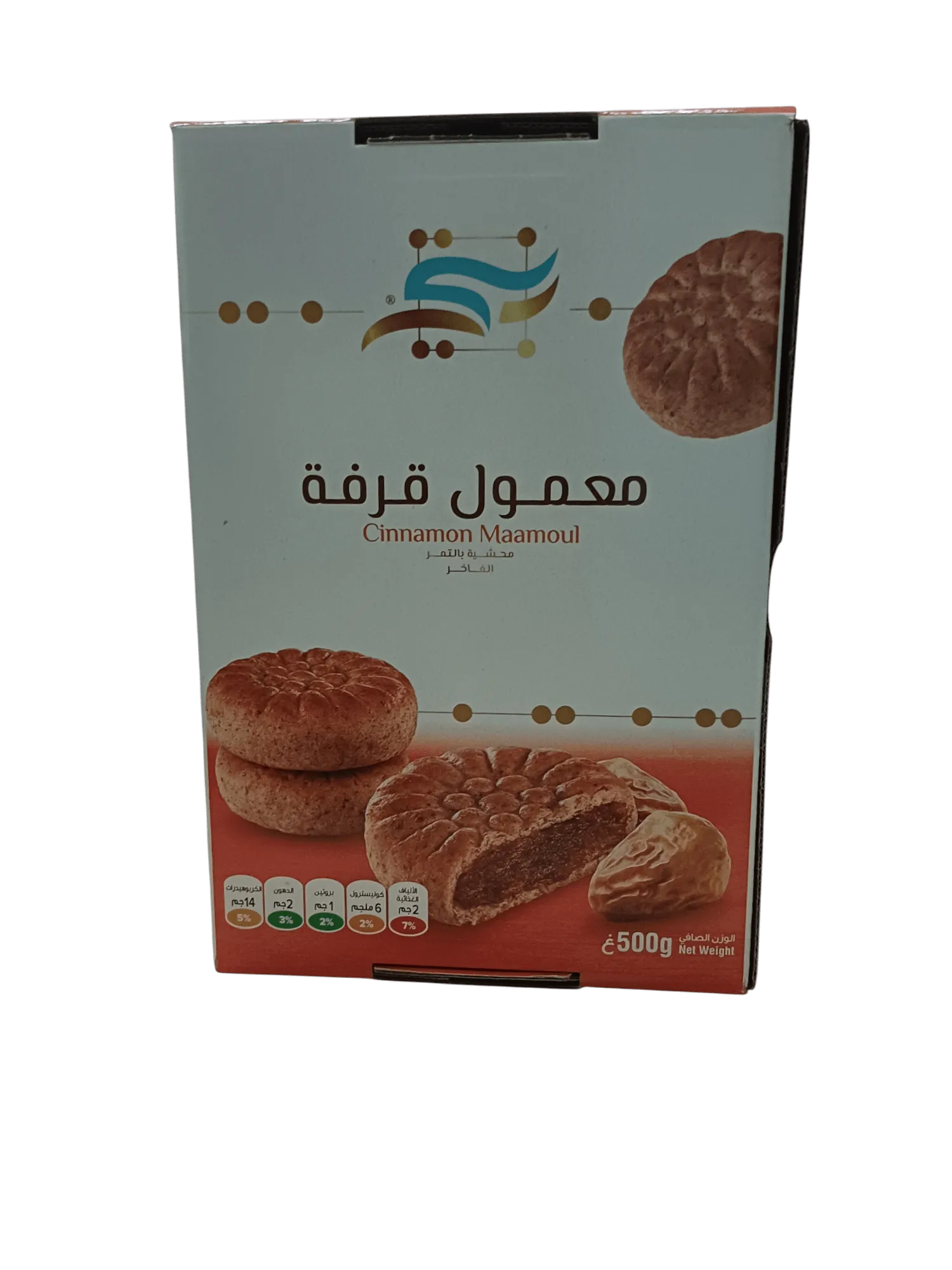 “"Cinnamon Maamoul" combines tradition with the distinctive flavor of cinnamon. Carefully crafted from a rich, flaky dough and filled with the finest natural dates, this product offers an exceptional experience for lovers of unique and innovative flavors.