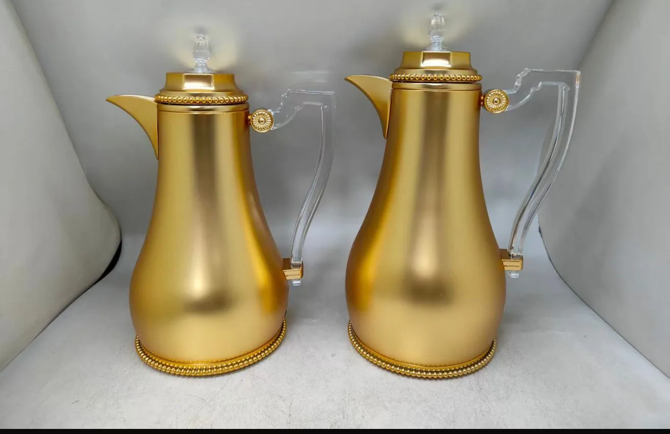 Add a touch of luxury to your gatherings with this gold-colored thermal coffee set, thoughtfully designed to combine elegant style with practicality. The set includes a 750ml coffee pot and a 1-liter tea pot, both boasting excellent heat retention for up to 12 hours, keeping your beverage hot for longer without the need for reheating.