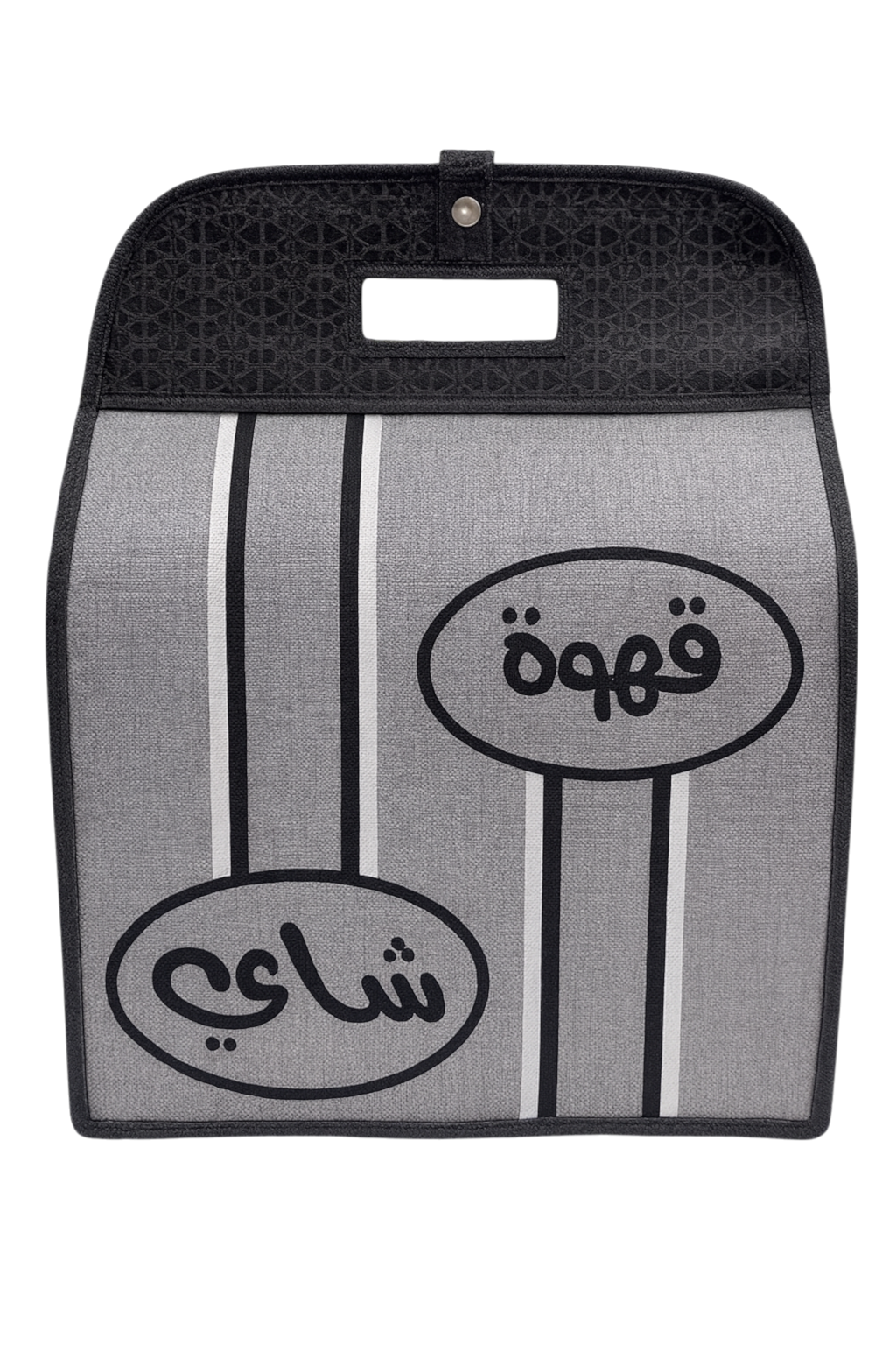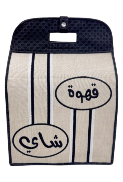 اجعل ضيافتك أكثر ترتيبًا وأناقة مع حقيبة حفظ القهوة والشاي المصممة خصيصًا لحمل الترامس وحمايتها أثناء التنقل أو التخزين. تتميز هذه الحقيبة بتصميم قماشي متين مع طبعة عربية جميلة لكلمة “قهوة” و”شاي”، مما يمنحها مظهراً عصريًا مع لمسة تراثية.