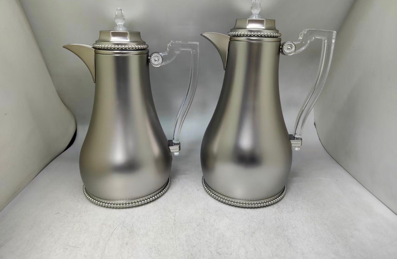 طقم دلة قهوة ودلة شاي حرارية مطلية باللون الذهبي او الفضي – قهوة 750 مل + شاي 1 لتر (حفظ حرارة 12 ساعة)