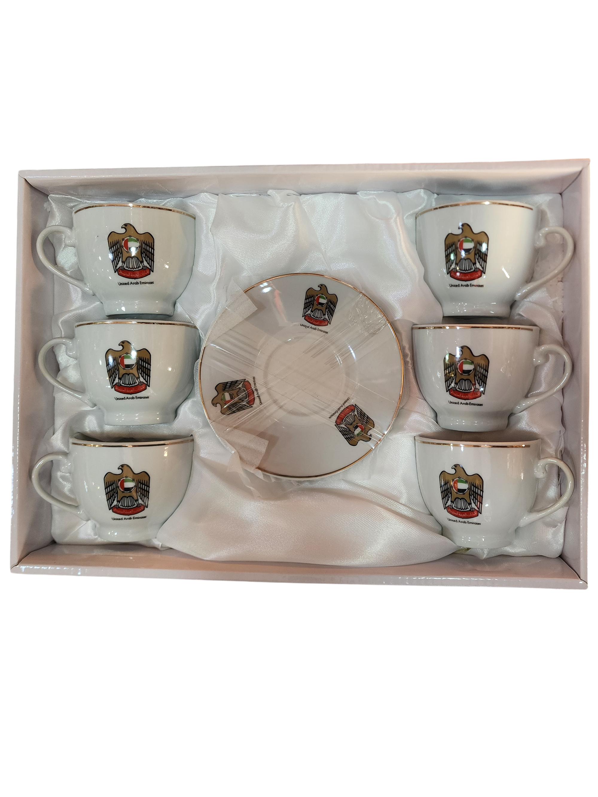 طقم فناجين شاي فاخر بشعار دولة الإمارات العربية المتحدة | تصميم أنيق ومطلي بالذهب