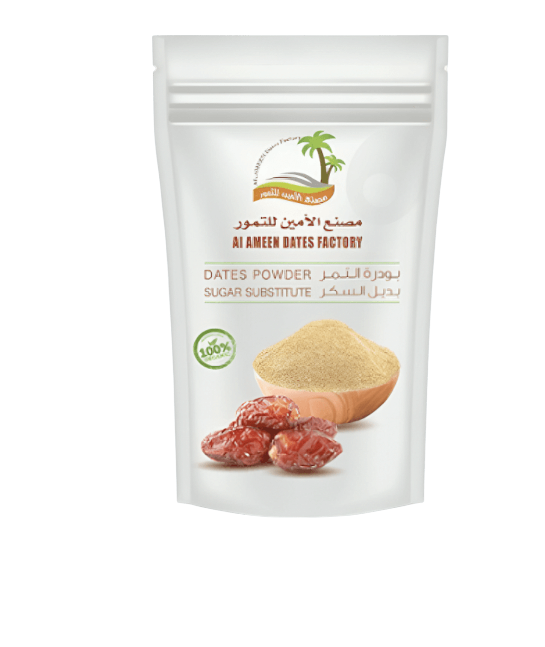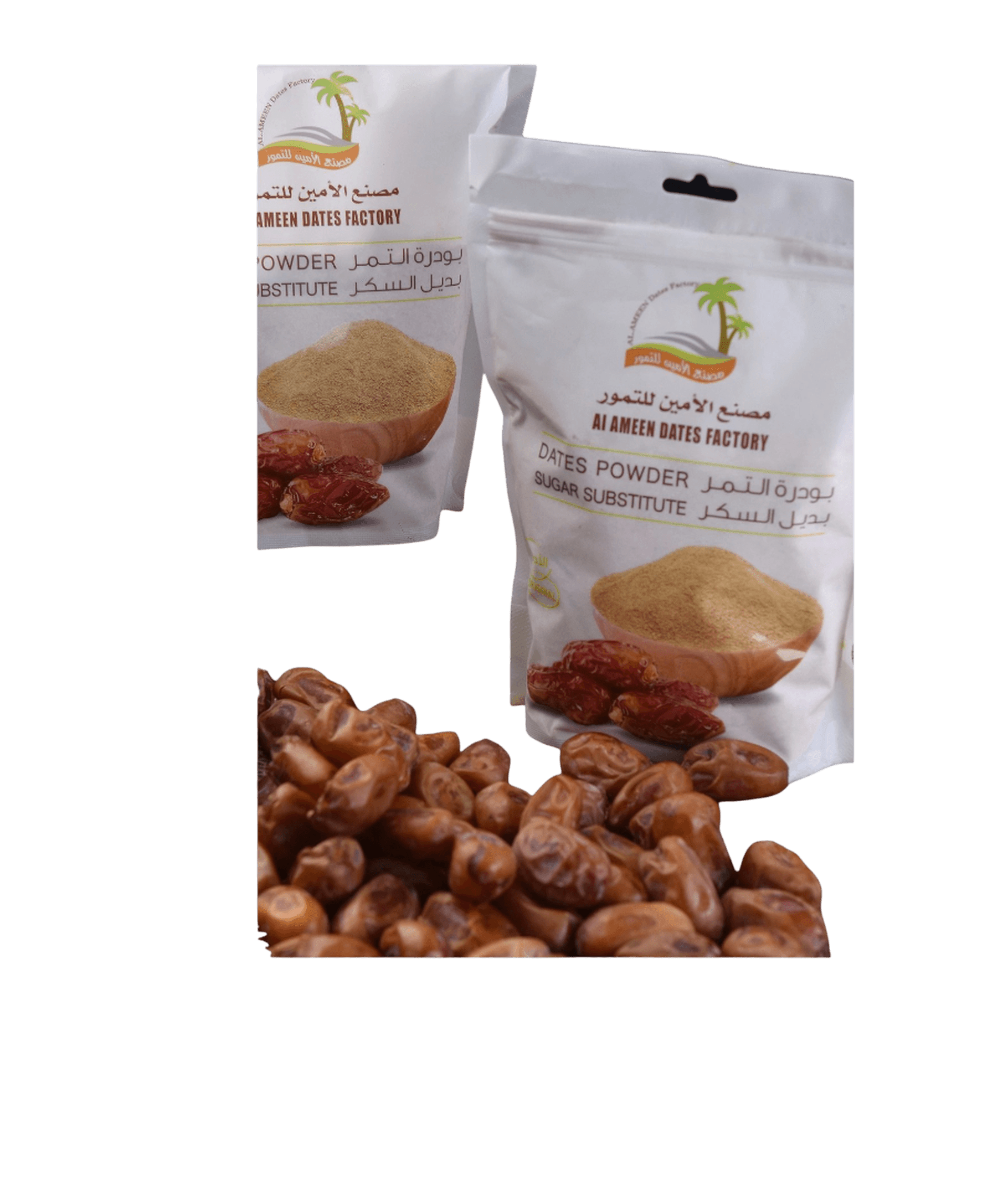 المنتج: بودرة التمر هي بديل طبيعي وصحي للسكر، مصنوعة من التمر الناضج المجفف والمطحون إلى مسحوق ناعم. تُعد هذه البودرة خيارًا ممتازًا لتحلية الأطعمة والمشروبات بطريقة صحية ومغذية.