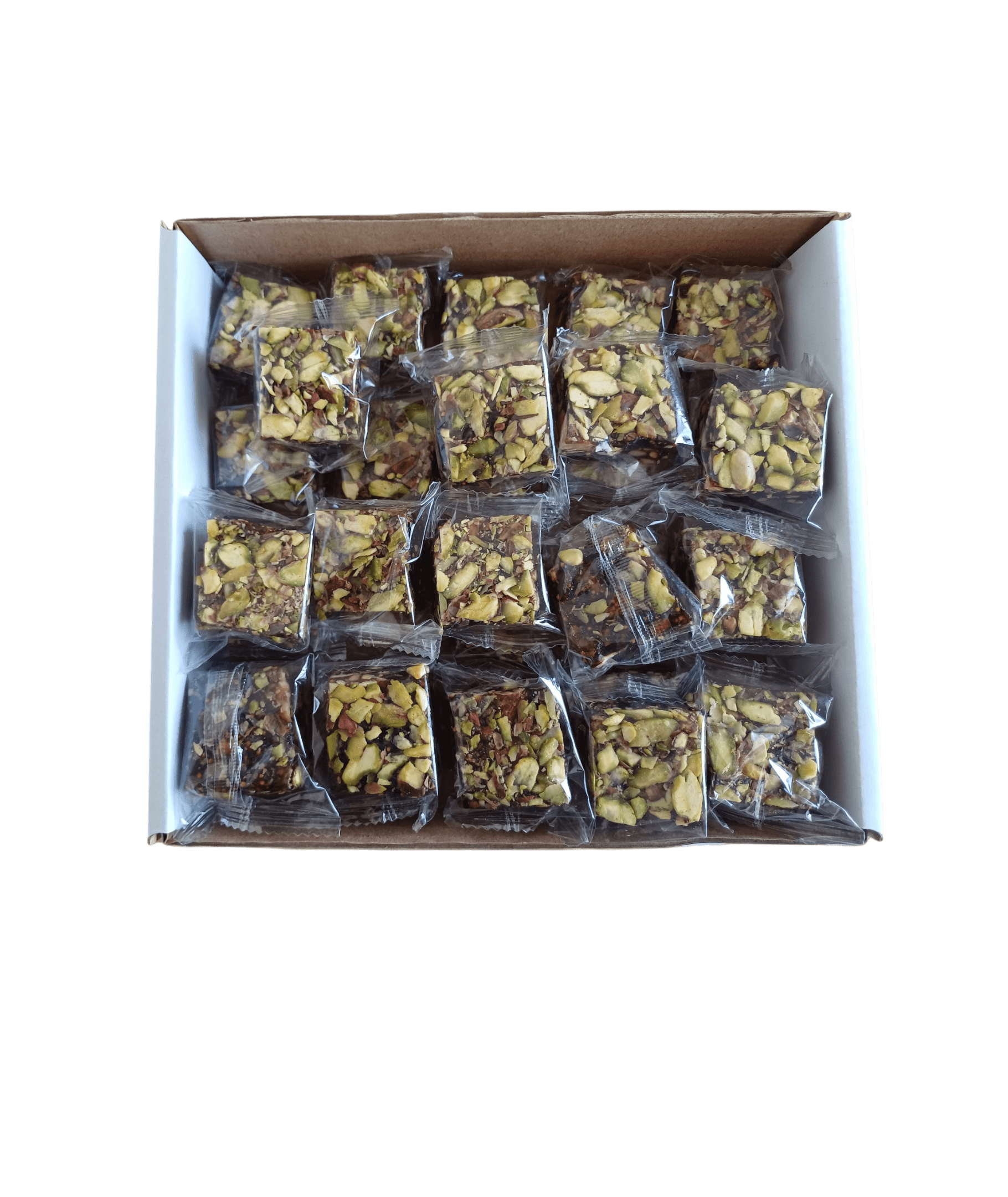 - قوام متوازن: تتميز الحلوى بقوام متوازن يجمع بين النعومة والقرمشة، مما يجعلها لذيذة وسهلة التناول. الفستق المبروش يندمج بشكل مثالي مع الحلوى، بينما الحبة الكاملة تضيف لمسة من الفخامة.