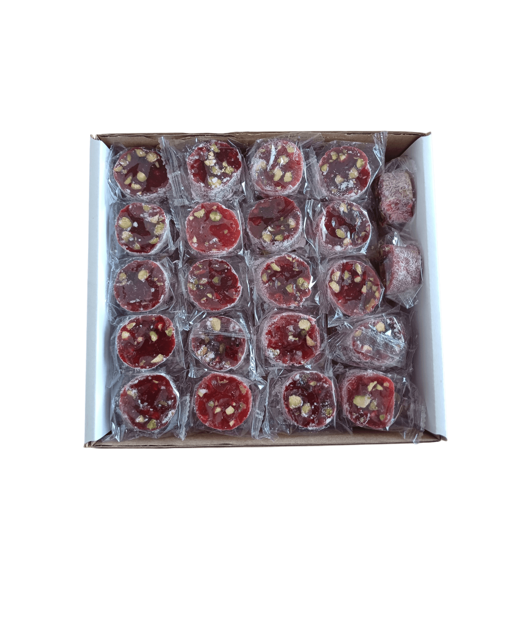 - نكهة غنية: تجمع الحلوى بين نكهة الملبن الكلاسيكية المنعشة ونكهة الرمان الحمضية والفستق المقرمش، مما يوفر تجربة مذاق متوازنة وممتعة. الفستق يضيف لمسة من القرمشة التي تعزز طعم الرمان.