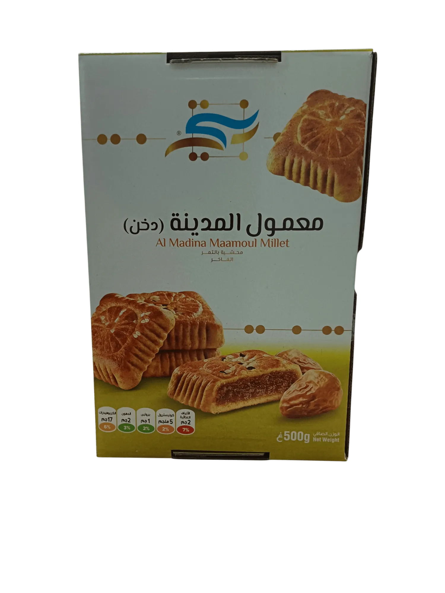 المكونات: دقيق دخن طبيعي، تمر طازج، مكونات طبيعية مختارة بعناية.