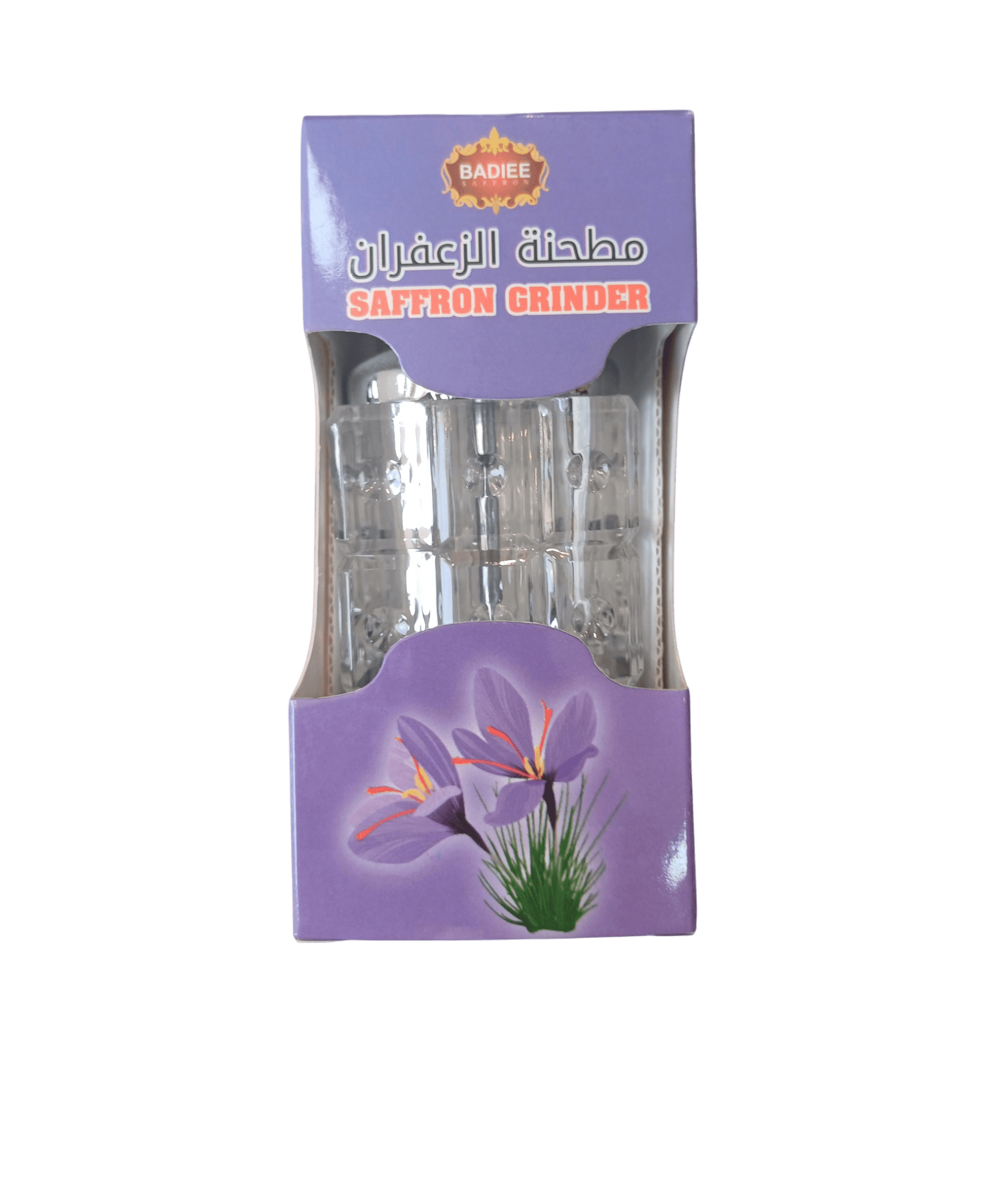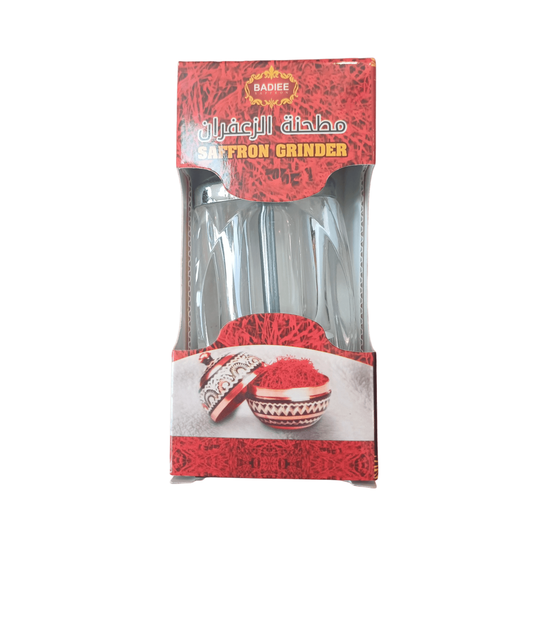مطحنة زعفران يدوية هي أداة تستخدم لطحن خيوط الزعفران إلى مسحوق ناعم، مما يساعد على تحسين نكهته واستخدامه في الطهي بشكل أفضل. الزعفران هو توابل غالية وثمينة تُستخدم لإضفاء نكهة ولون مميز على الأطعمة. استخدام مطحنة يدوية يتيح لك طحن الزعفران بشكل طازج عند الحاجة، مما يحافظ على نكهته وجودته.