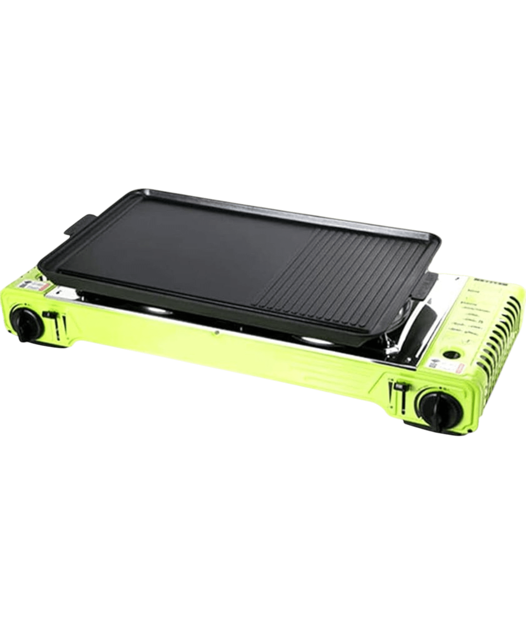 موقد تخييم كوري مزدوج الشعلة بوتان مع شواية شواء