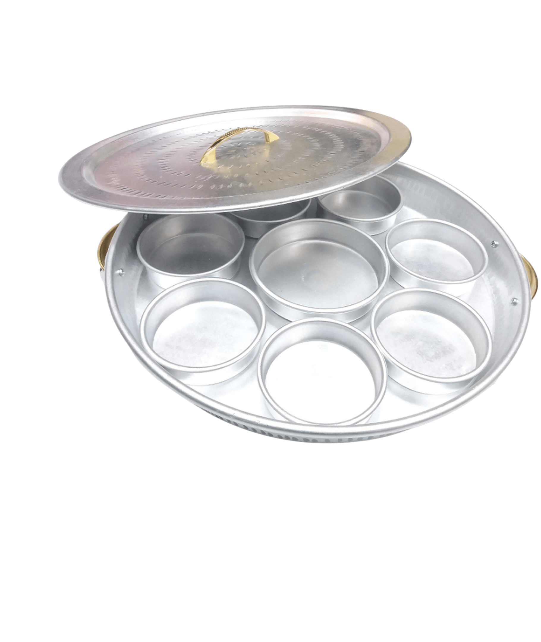 صينية إفطار تقديم مع غطاء عميق من 7 قطع فضي