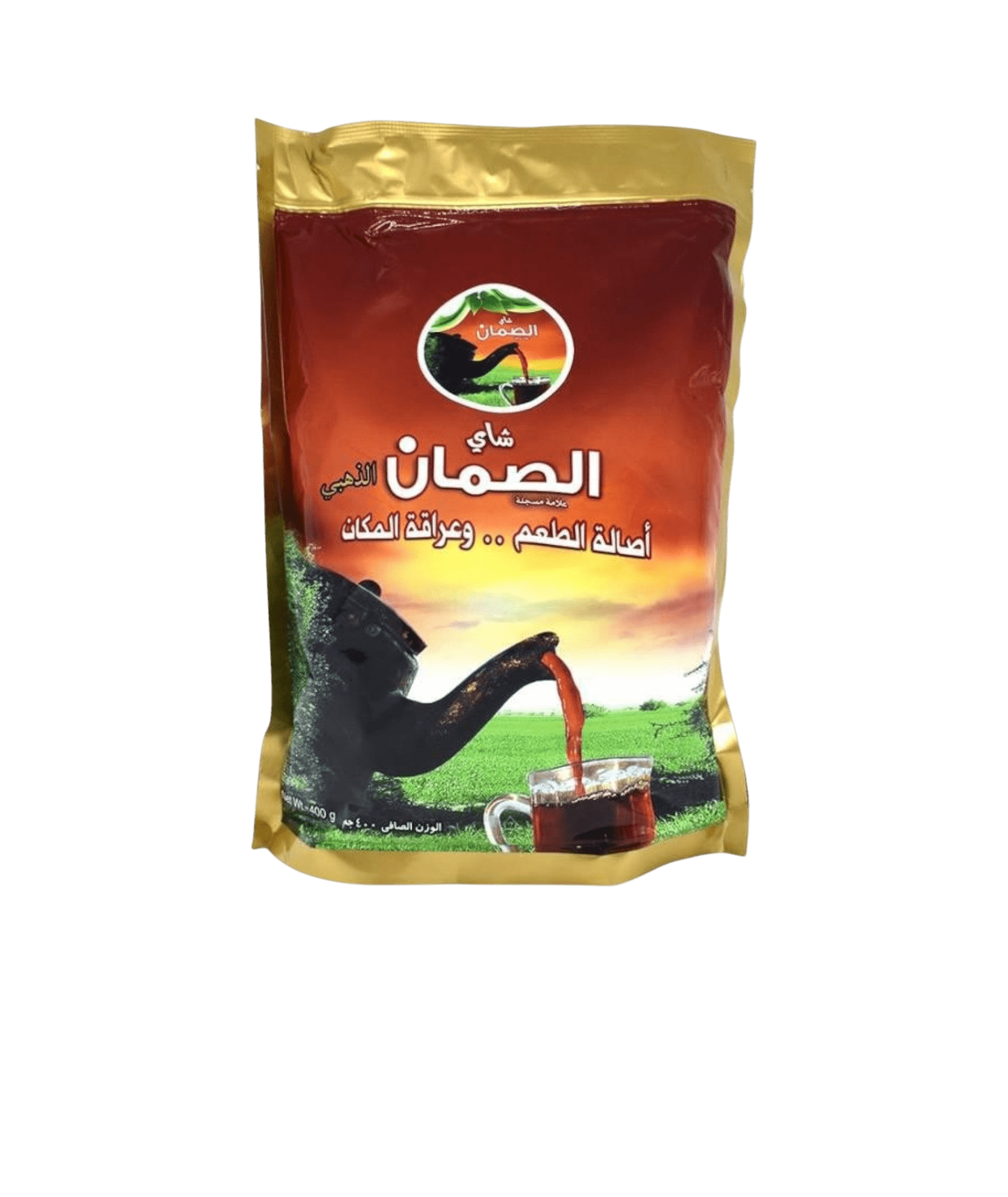 العبوة الكبيرة تضمن احتياجاتك اليومية مع الحفاظ على نضارة الشاي ونكهته الطازجة. شاي الصمان يجمع بين الأصالة والجودة ليمنحك لحظات استرخاء لا تُنسى.”