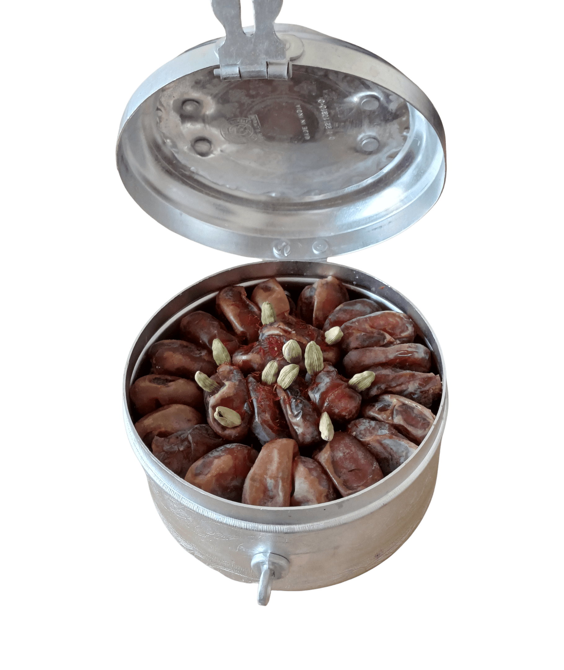 - التفادي: تأكد من إغلاق العلبة بإحكام بعد كل استخدام لتفادي تأثير الهواء والرطوبة على جودة التمر.